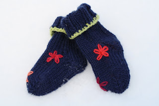 — Stickat - sockor — >Sockor 2 januari 2010 >Hittade lite restgarn och det blev ett par små sockor. Kanske till en liten Maja?