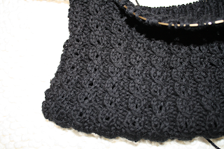 Jag har ett till väskprojekt som jag jobbar med. Denna gång håller jag på att sticka en väska. Jag har använt samma stickmönster, som jag använde på pulsvärmarna Augusta, som jag stickade för någon vecka sedan. Mönstret blir lite likt en fläta, fast det inte är en fläta egentligen. Jag tyckte den strukturen blev så fin. Dessutom testade jag att göra upplägget på väskan på samma sätt som när man gör när man stickar en socka från tån och uppåt, d v s jag gjorde en Magical loop. I botten av väskan kan man inte se att det var där jag började. Jag har sedan stickat den med rundstickor hela vägen. Nu sitter jag och funderar på hur jag ska göra upptill på väskan och vilka handtag jag ska sätta dit. Jag har både ett par bambuhandtag och ett par handtag gjorda av en böjd kraftigare ståltråd. Jag tror båda skulle kunna bli fina till. Det är mest en fråga om att jag måste bestämma mig nu, så att jag kan anpassa avslutningen på väskan efter valt handtag. Mycket att tänka på med andra ord.