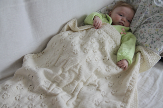 — Stickat - babyfilt — >Maja i sin nya filt! 21 mars 2010 >Så här söt och fin är lilla Maja när hon tar igen sig efter dopet. Lutad mot några kuddar och med den nya filten på sig. Söt som socker inte sant!