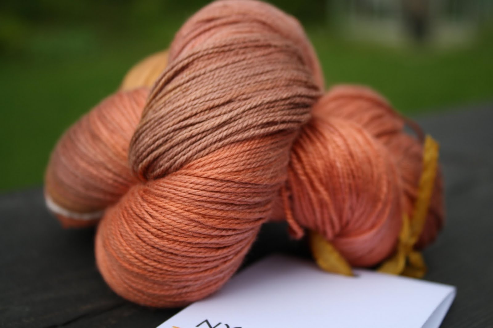 Jag har unnat mig något riktigt lyxigt nu i sommar. Jag har gått med i Nyanseras garnklubb och nu har första paketet kommit. Det är ett lite rostrosafärgat garn som heter Sundari och som består av 100% silke, så ni fattar hur lyxigt detta känns. På bilden, så är garnet lite mörkare än vad det är i verkligheten, men ni kan ju själva se att det är ett väldigt vackert garn. Härvan väger 100 gram och är ca 400 m långt. Med garnet fick jag lite tips på vad man kan sticka och detta är alternativen:
