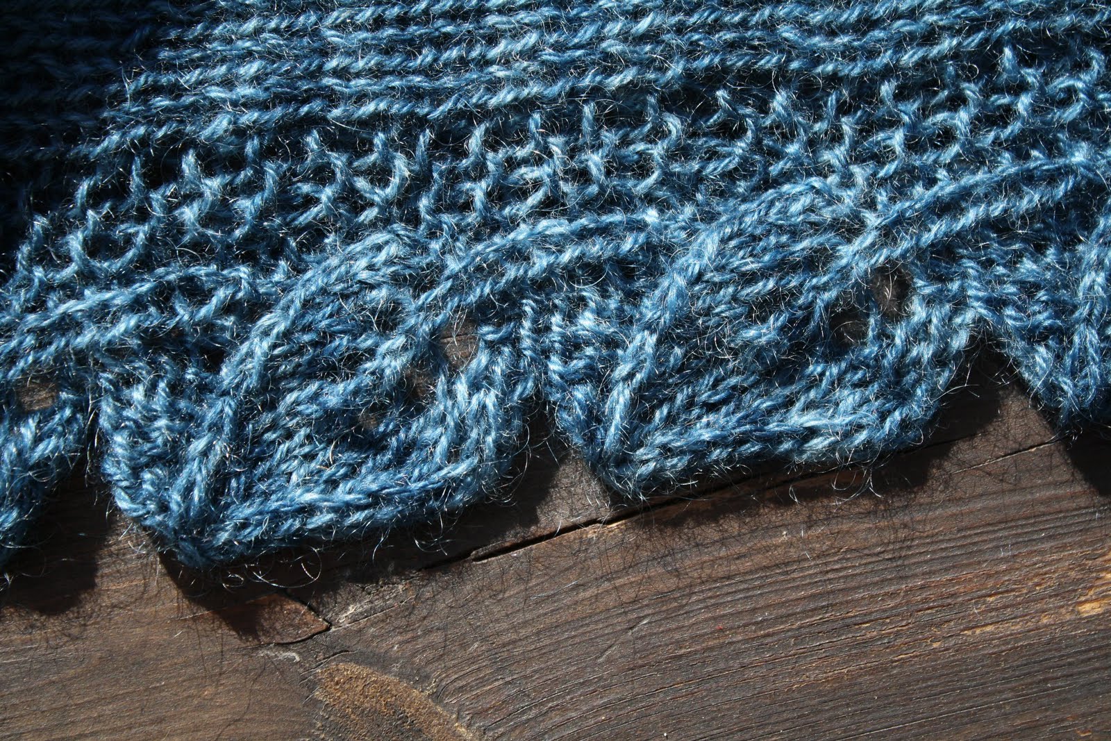 Sjalen blev så fin och jag är så nöjd! Färgen är så där petrolaktig och med en ljuvlig lyster. Nu sitter jag här och nästan längtar till hösten. Vad är det frågan om? Jag vill ju ha sommar länge till, men när det så smäller till och blir kallt, så kommer jag inte frysa om halsen i alla fall!