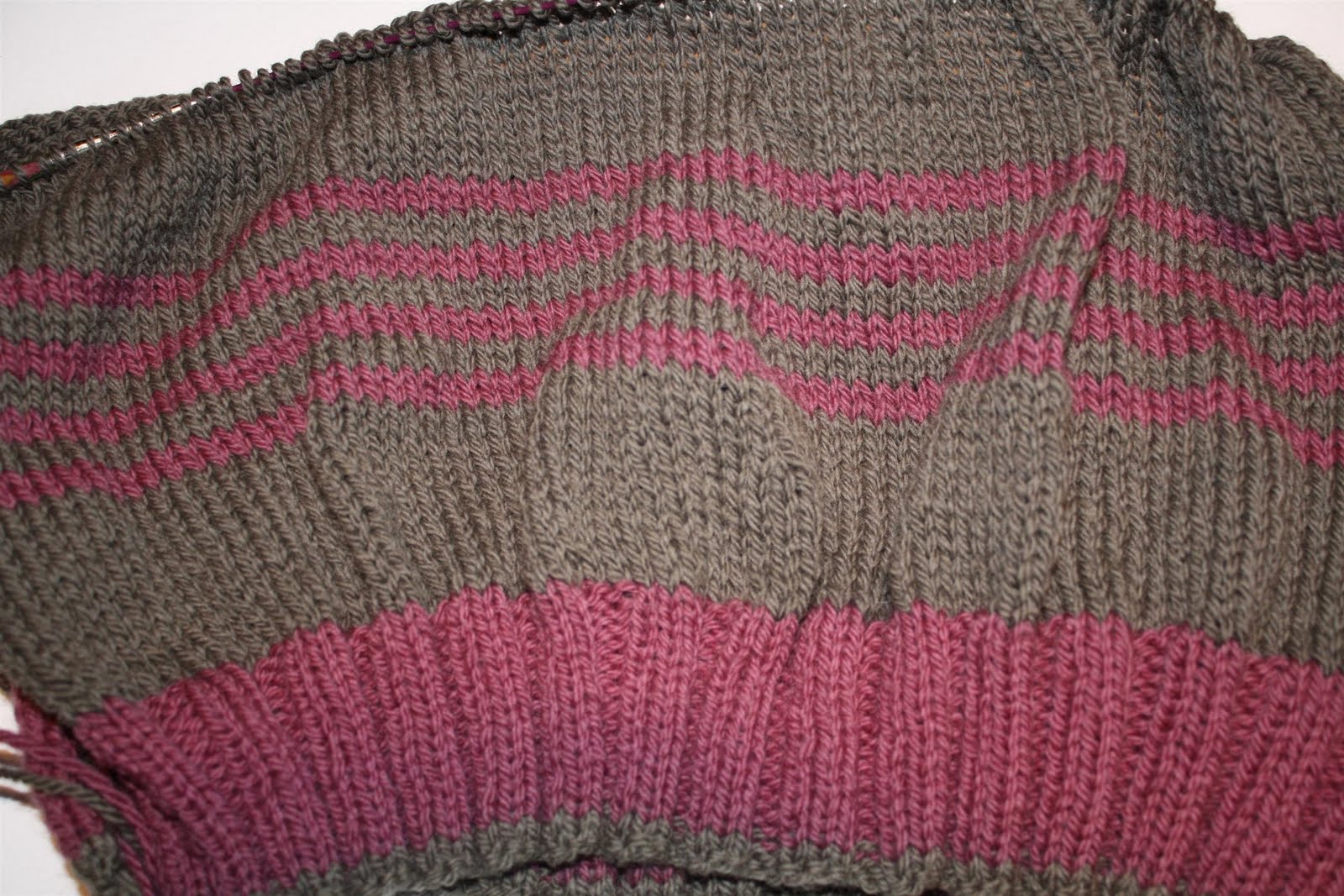 Jag stickar faktiskt inte bara på mina UFOn…även om man skulle kunna tro det när man läser bloggen upptäckte jag just. Jag har påbörjat en kofta i mitt Rowangarn, som jag köpte för en tid sedan. Garnet är mjukt och vackert och skönt att sticka i. Tyvärr fäller den bruna färgen kopiöst mycket, så jag får nog tvätta den noga när jag väl är klar med koftan och det är dags att blocka den. Ja, ja den dagen den sorgen…