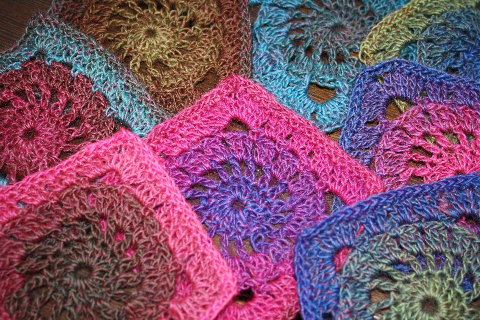 >Rutorna blir jättefina! Garnet passar perfekt för att virka rutor. Och många projekt…ja, det är väl så det blir när man har mycket idéer 🙂