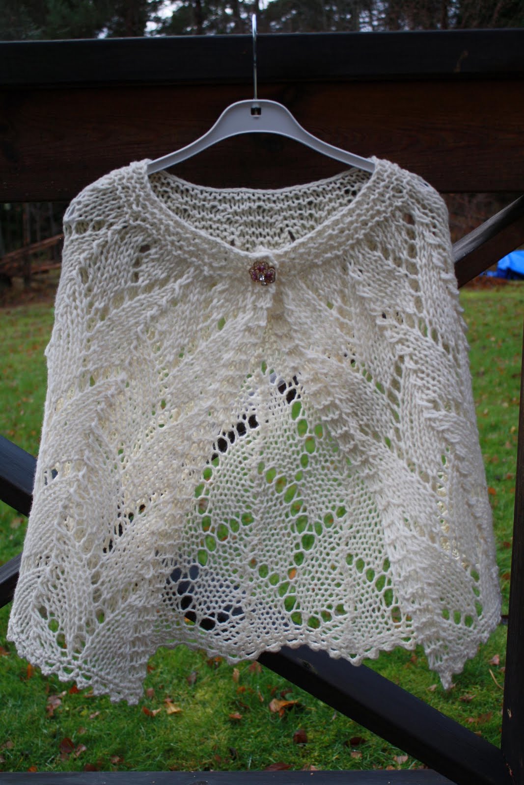 Idag så var både ljus och kamera på min sida, så nu fick jag chansen att fotografera min färdiga axelvärmare. Jag gjorde om den lite ifrån originalet, för det fanns gott om garn. Jag gjorde en mönsterrapport extra och dessutom så virkade jag på en kant nedtill också. Jag har fortfarande garn kvar, så nu ska jag göra en snodd som jag kan ha upptill istället för broschen som sitter där nu. Den var enkel att göra. Den sitter ganska bra på och gick väldigt fort att få färdig. Kanske inte så konstigt med tanke på att jag använt stickor nr 9…