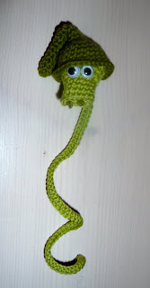 Jag surfade runt och hittade detta underbara lilla bokmärke på Caloweenas blogg. Hon är generös och bjuder på mönster också. Varför inte virka sig ett litet bokmärke. För att ni ska bli lika inspirerade som jag, så lånade jag Caloweenas foto av den färdiga Sir Väs. Värd att lägga en stund på eller hur!
